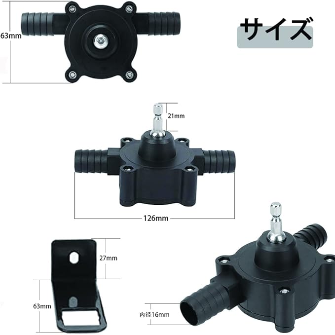SeonFook ハンドドリルポンプ ドリルでポンプ 六角軸 6.35mm 小型 電動 ポンプ 電動ドリル駆動ポンプ ポータブル 排水ポンプ 部分取り外し可能 自吸式電動ポンプ 各種排水・水溶性研削液等の移送に