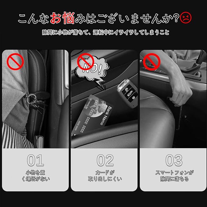 「落下防止で安心設計」 シートとコンソールの隙間を完全カバー!スマホ・財布が溝に落ちるストレスから解放。フリースペースを有効活用し、車内をスッキリ整理できます