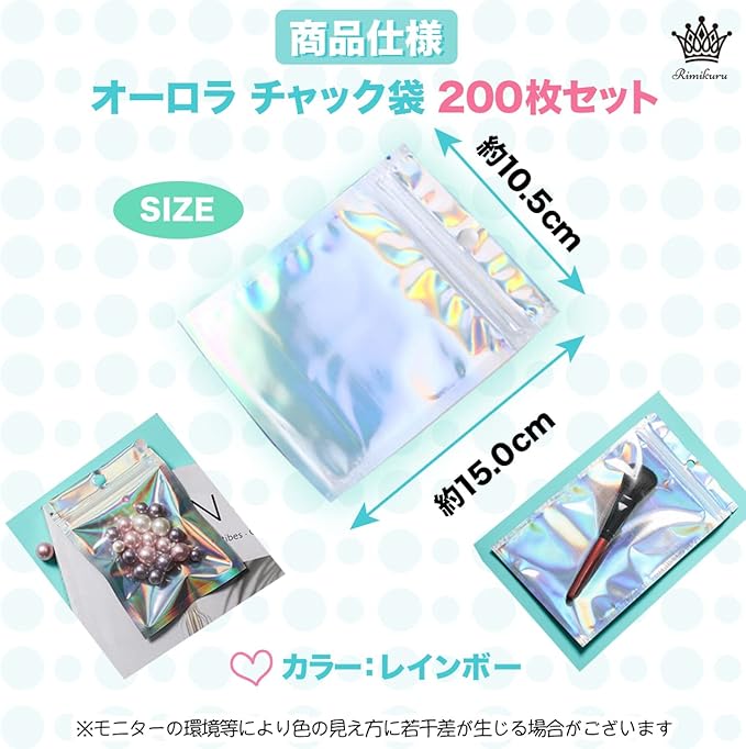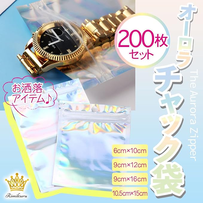 Rimikuru オーロラ チャック袋 200枚セット アルミ袋 収納袋 厚手 ジッパー付き袋 小さい (10.5cm 15cm)