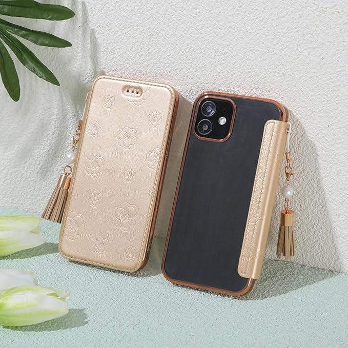 iPhone13mini ケース 手帳型 花柄 iPhone13mini ケース 財布型 iPhone13 mini 手帳型ケース 透明 薄型 軽い iPhone13 mini カバー手帳型 おしゃれ 女性専用 化粧鏡付き タッセル付き iPhone13mini レザーケース 手帳型 可愛い カード収納付き 耐久性 メッキ加工 エンボス工芸 最軽量 ゴールド