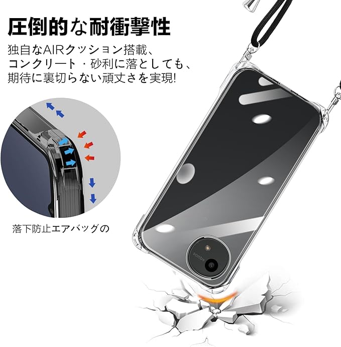 AQUOS Wish4 用 ケース クリア ショルダー aquos wish4 SH-52E 用 スマホケース アクオス ウィッシュ4 カバー 肩掛け 斜めかけ 縄掛け 透明 薄型 軽量 TPU 携帯ケース 紐付き 斜めがけ 織りストラップ付き ネックストラップ ショルダー 縦/横 2WAY 長さ調整可能 取り外し可能 落下防止 紛失防止 ワイヤレス充電対応 (クリア)