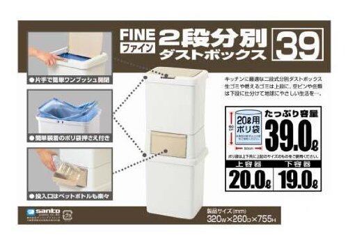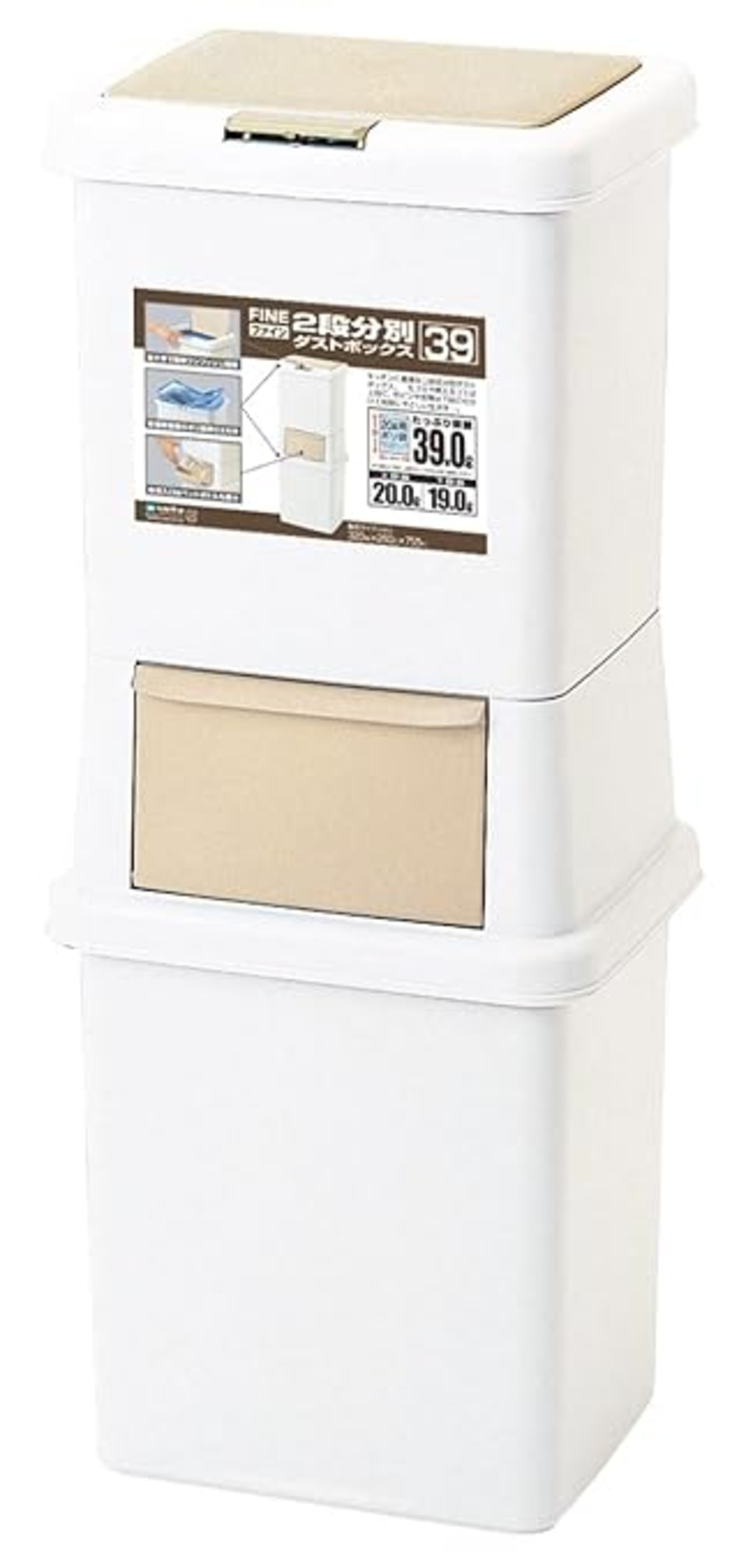 サンコープラスチック ゴミ箱 2段分別スリム 39L ライトベージュ