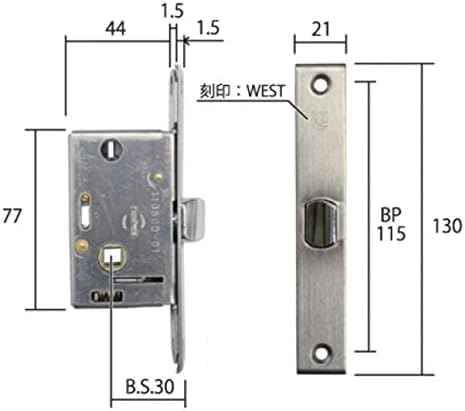 ケース部(ドアの中身の部分):ビスピッチ:115mm 外々:130mm 21mm バックセット30mm