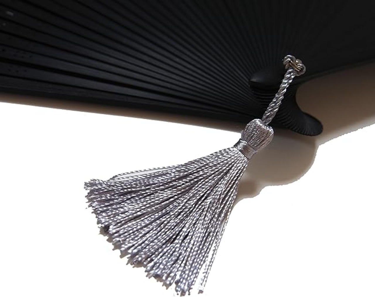 【限定商品】扇子職人の手作り 紳士 男性 短地 シルク 扇子 骨色黒染 22cm 42間 (房付き) ブラック 126021