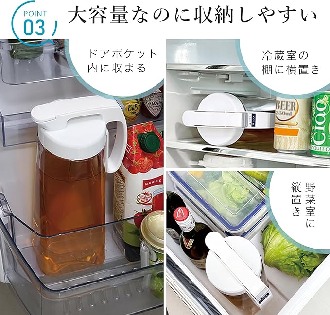 岩崎工業 ラストロウェア 冷水筒 2.1L シームレス ピッチャー 熱湯可 日本製 麦茶 麦茶ボトル お茶 水出しコーヒー 水出し 冷茶 ボトル 横置き 耐熱 広口 冷茶ポット ジャグ ホワイト K-1286 W