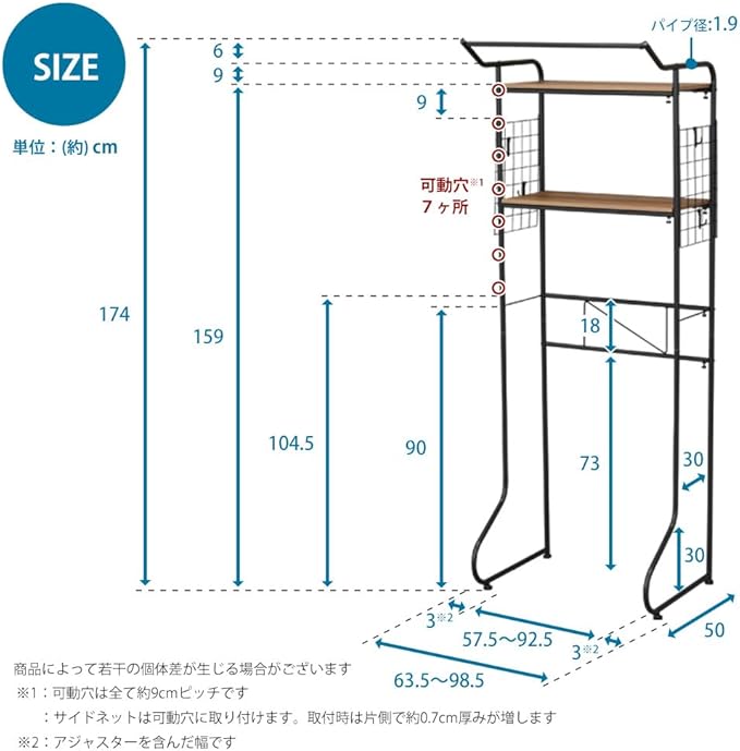 サイズ:(約)幅64.5~98.5x奥行50x高さ174cm