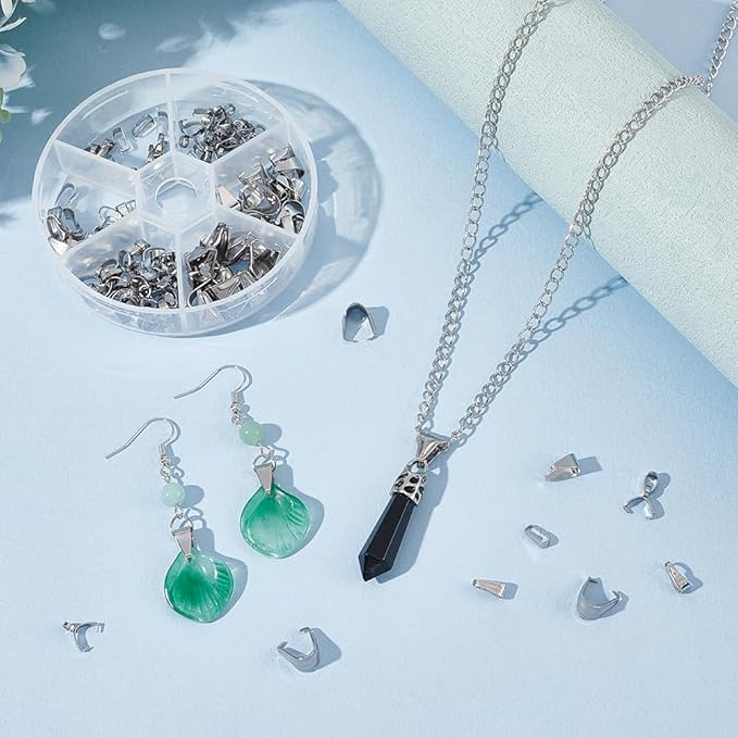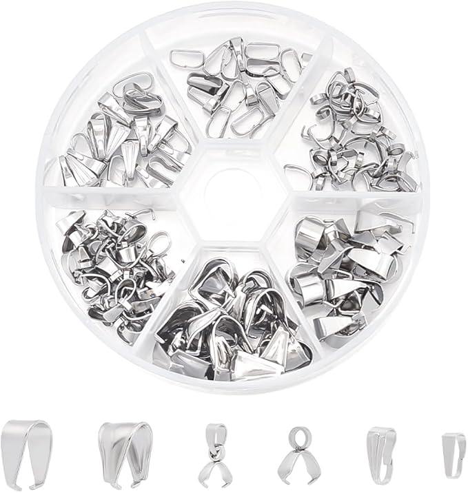 使い方が簡単:高品質のベイルを使用して、ドリルで開けたビーズやチャームを美しいペンダントに変えます。 ベイルを開き、ベイルを閉じるために少し力を加え、ペンダントのドリル穴にプロングを押し込みます。