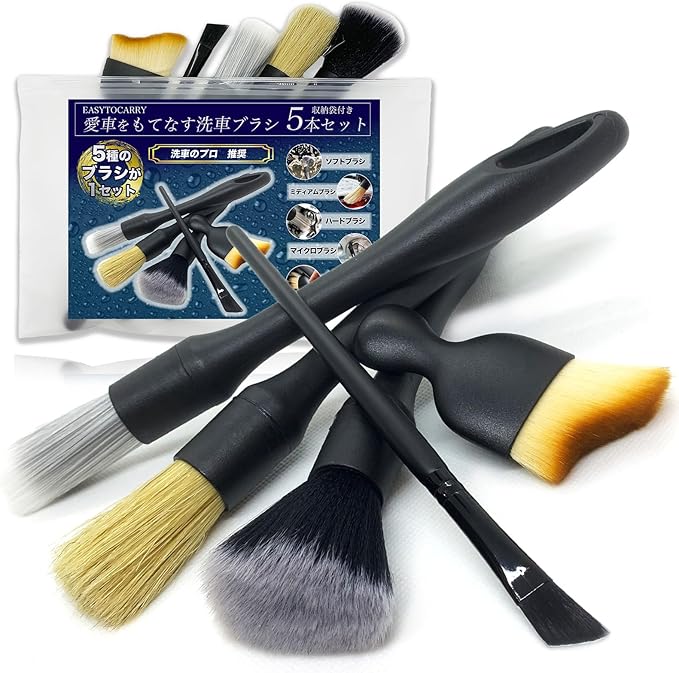 洗車ブラシ 5種類 5本セット 【EASYTOCARRY】ディテールブラシ ホイール ボディ用 洗車グッズ カー用品 便利 傷つかない ロング トラック 筆 豚毛 柔らか バイク 車内
