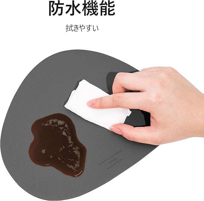 【防水、スクラッチ、ほこり防止】 生活防水が可能なプレミアムPU革で作りました。液体が吸収されない防水生地で、デスクマットの上に水をこぼしても濡れず、簡単に拭けてあまり汚染されません。また、スクラッチが多くできず、ほこりが付きにくいです。 生地の特性上、手に付かず、べたつきがなく、スクラッチも多くできず、ほこりが付きにくいです。