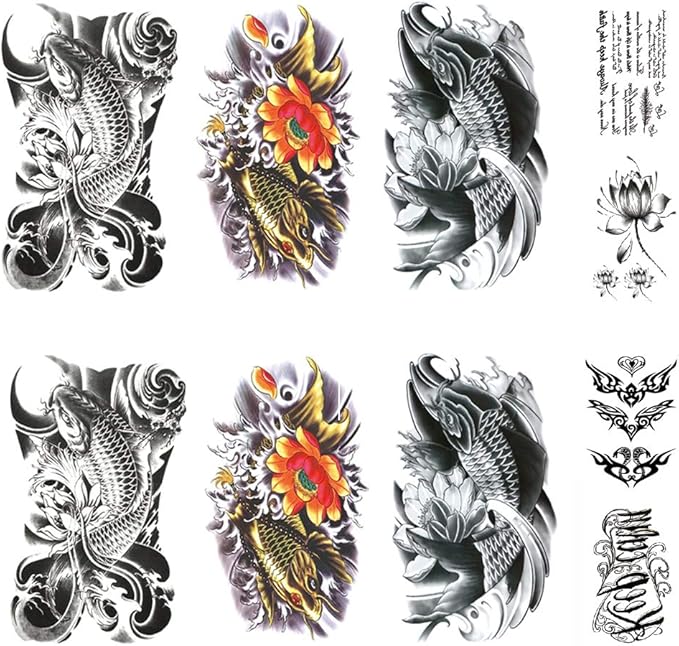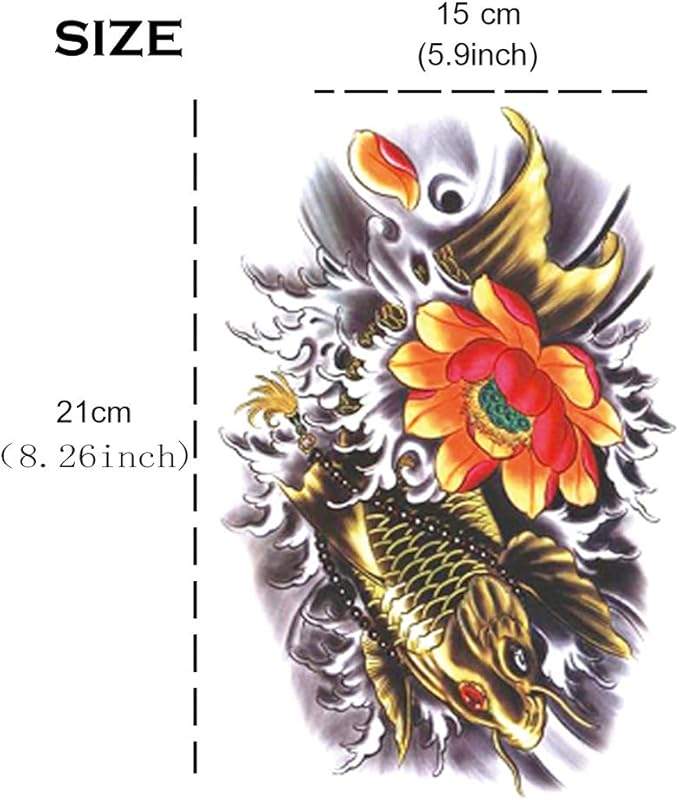 Yesallwas タトゥーシール 鯉 蓮の花 和柄 入れ墨シール リアル 大判 防水 長持ち 和彫り 刺青シール ボディー子供 メンズ レディース Tatoo 15x21CM (A.10枚セット)