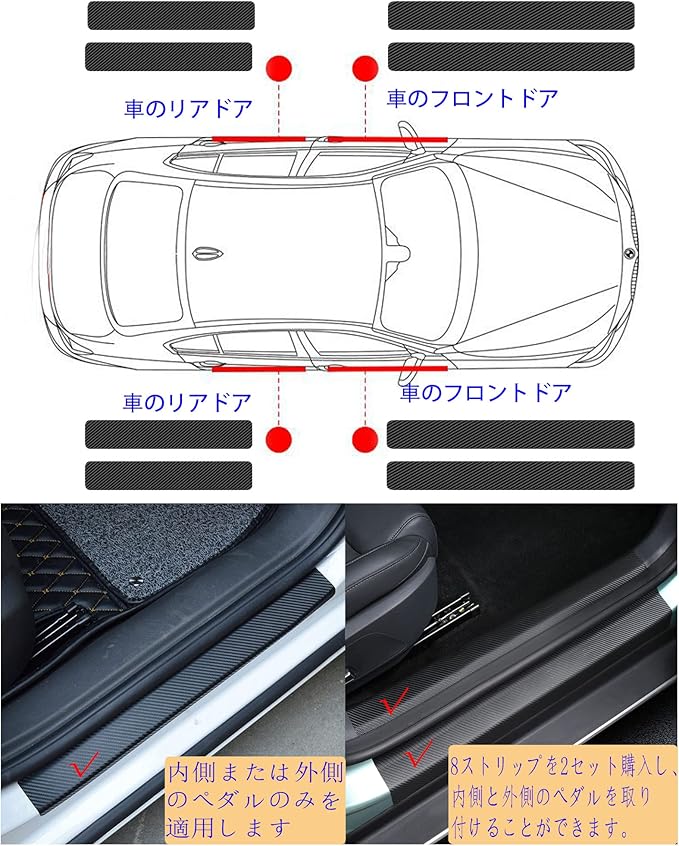車用 サイドステップガード サイドステップ スカッフプレート 内外側スカッフプレート 保護 傷防止 ひっかき傷 傷隠し 防汚れ