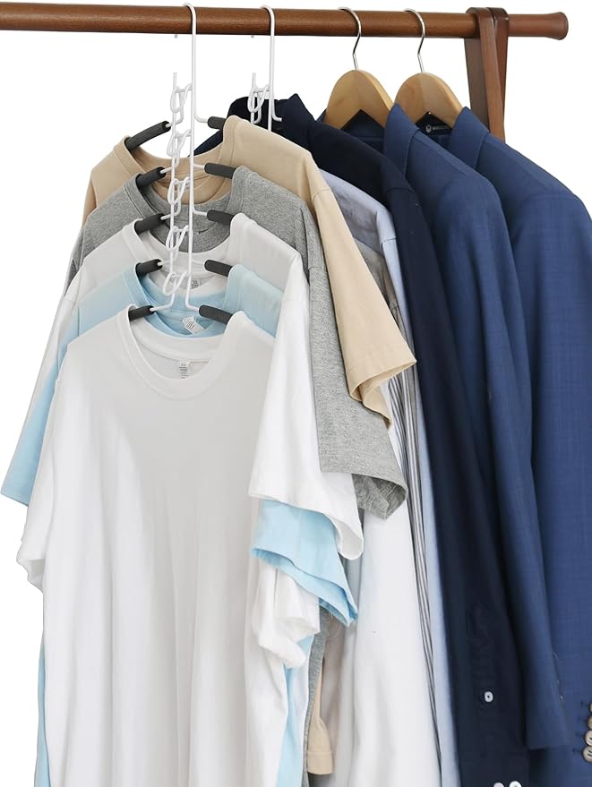 クローゼットのスペース不足にお困りですか?この5段連結式ハンガーが、限られた収納空間を最大限に活用します。縦に連なるデザインで、最大5枚の衣類を1本のフックで吊るすことができ、省スペースかつ整理整頓が簡単に。滑り止め付きアームが洋服をしっかり固定し、ずり落ちや型崩れを防止。シャツ、Tシャツ、セーター、薄手のジャケットなど、幅広い衣類に対応。家庭、アパート、オフィスなど、どんな場所にもぴったりで、スペースを有効に使いたい方に最適なアイテムです。シンプルでスタイリッシュなデザインは、インテリアにも自然に馴染み、使うたびに気分が良くなります。