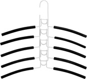 縦横に5枚まで掛けられる多機能ハンガーで、クローゼットのスペースを有効活用できます。衣類の整理整頓がもっと簡単に!