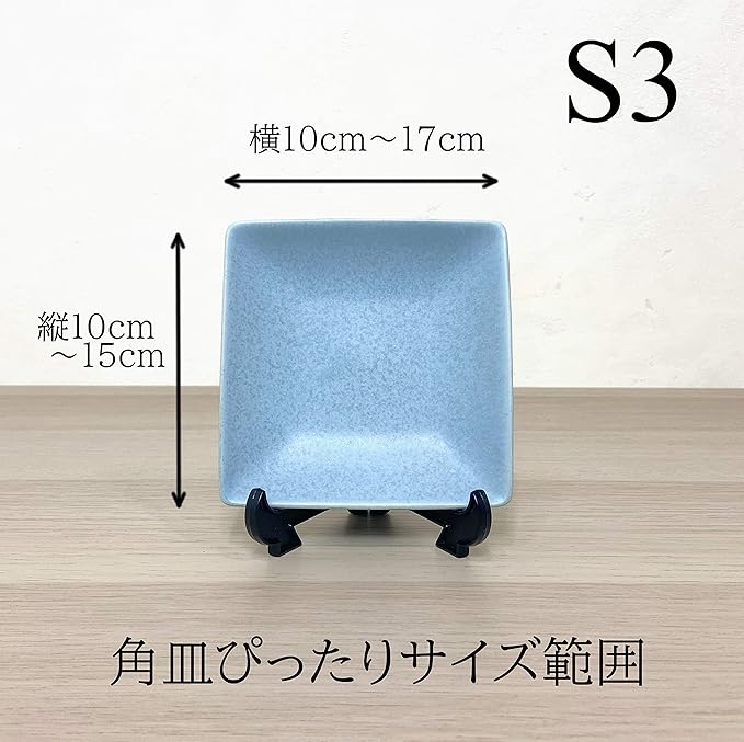 【ぴったりサイズ】直径11~15cmの丸皿、縦10〜15cm・横10〜13cmの角皿や額縁等を飾る事ができるスタンドです。