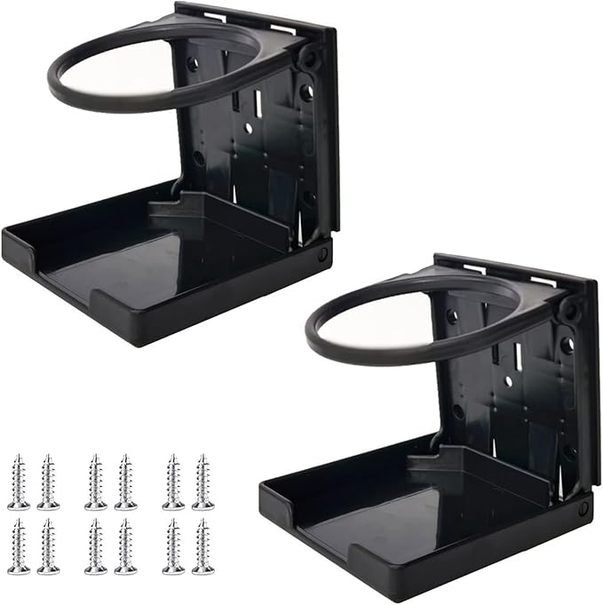 【簡単なインストール】:調整可能な折りたたみ式ドリンクホルダーには、取り付け用のネジが付いており、取り付けと使用が簡単です。