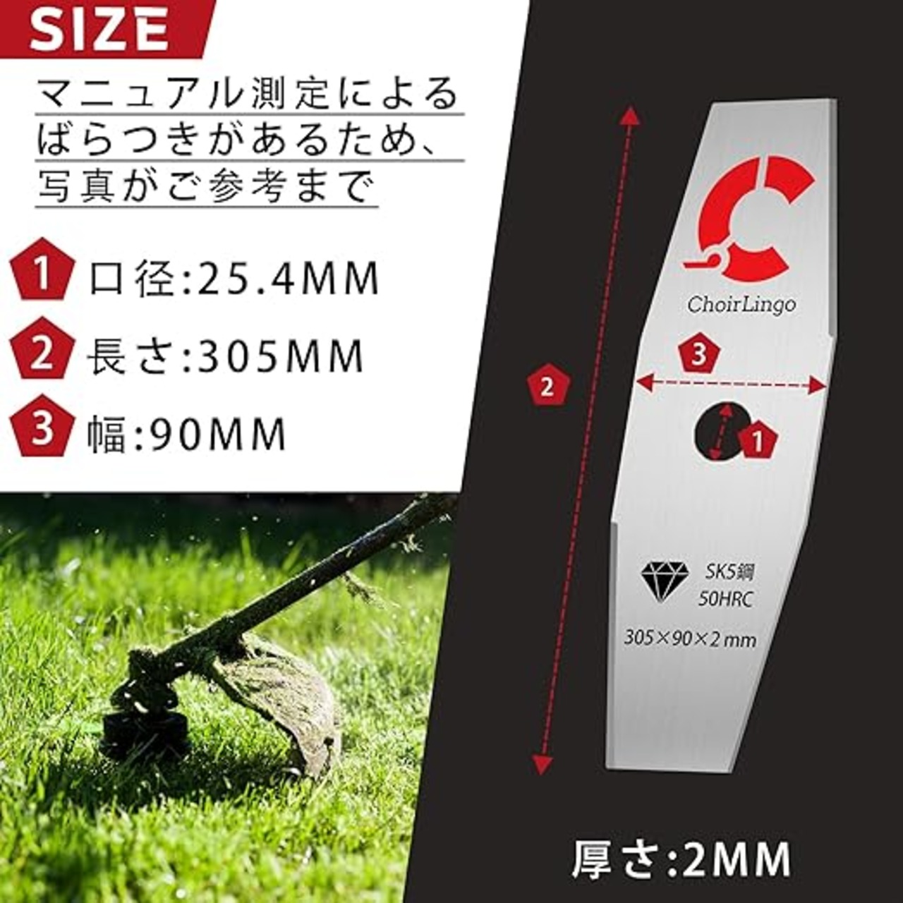 【効率的な草刈り作業】草刈り機の刃は2枚セットで提供され、芝生や雑草の整理に最適です。農業、園芸、ガーデニングにおいて、一度でしっかりと刈り取ることができるため、作業効率が大幅に向上します。