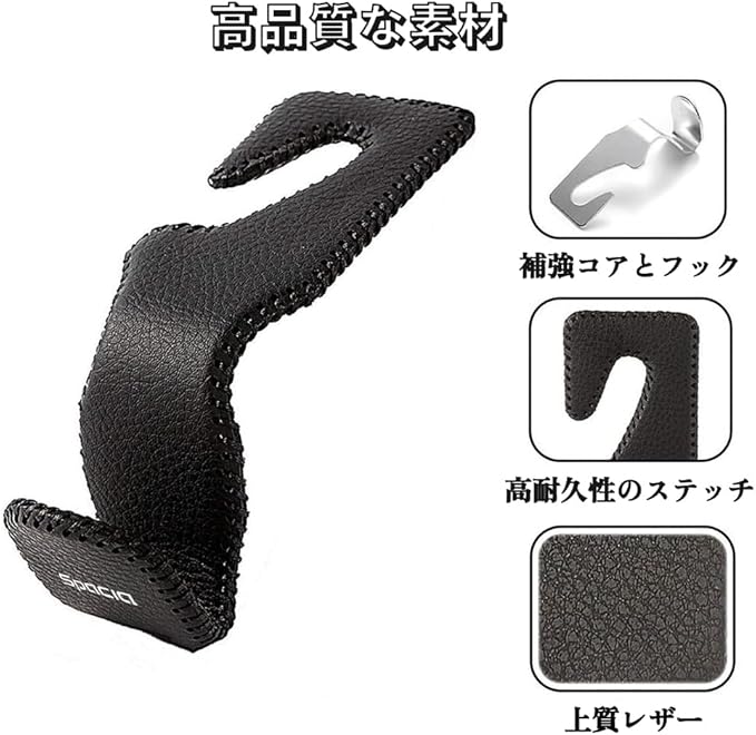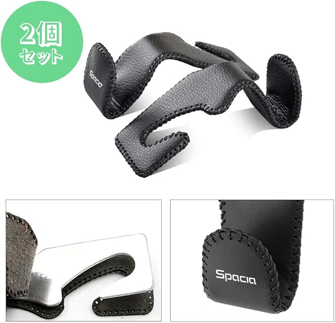 Blazeray 【スペーシア 専用】車用シートフック へッドレストフック 内装パーツ カー用品 アクセサリー 耐荷重強い 収納 荷物かけ 金属製 便利グッズ 荷崩れ 転倒防止 取付簡単 2個セット(ブラック)