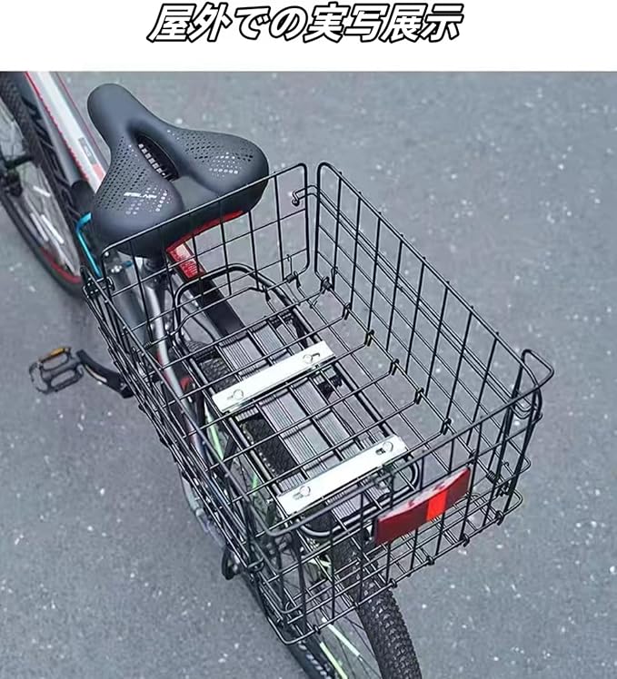 自転車用バスケット(カゴ) 自転車リアバスケット 後ろ固定式 後ろバスケット 軽量 大容量 簡単な組み立 ポータブル 軽快車用 荷台付折りたたみ自転車用 折り畳みかご