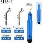 寸法:クラン型リーマー:直径16.5mm 40 標準ブレード α:長さ47㎜ 刃部分 11㎜ チタンコートブレード β:長さ47㎜ 刃部分 11㎜ 着脱式ホルダー部分 長さ12.5cm 幅2.1cm ※ 刃先は非常に鋭利となっておりますので取扱には充分にご注意ください。