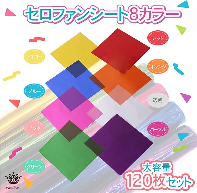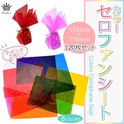 セロファンシート 155mm 155mm 8カラー 120枚セット:ラッピングや工作などで使えるカラー セロファンシートです。8色・各色15枚入りの大容量なので、数を気にせずラッピングや工作にご使用いただけます。