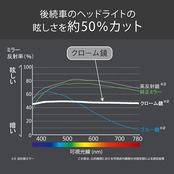 後続車のヘッドライトの眩しさを約50%カットする  くっきり度合いと色のコントラストがよく 本当に見やすい  高級クローム鏡