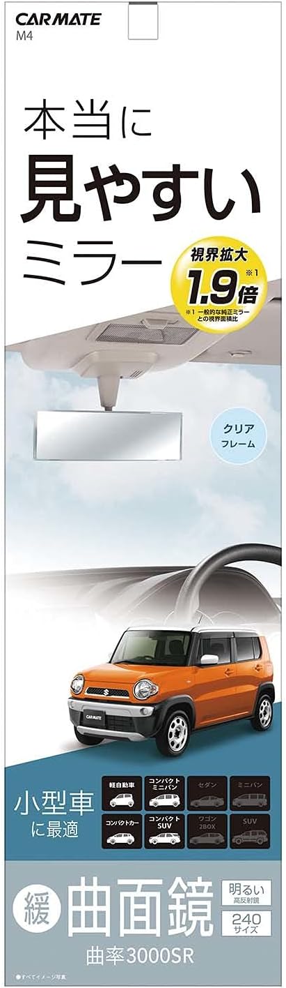 カーメイト(CARMATE) 車用 ルームミラー 3000R パーフェクト 小型車に最適 視野拡大約1.9倍 240mm クリアー M4