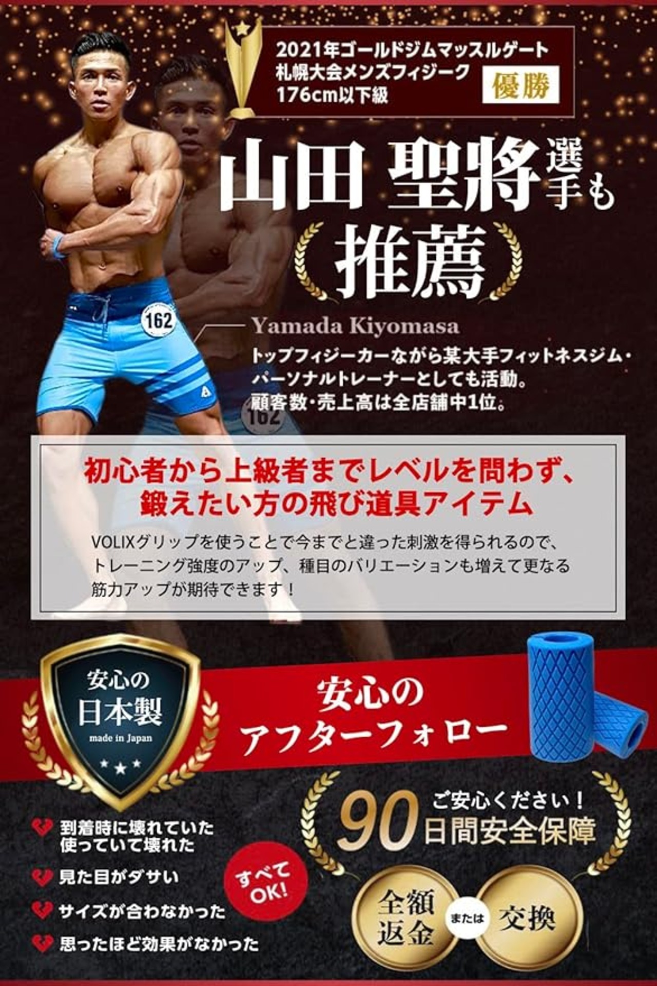 ・【VOLIXのグリップは太く、ダイレクトに腕を刺激する】通常より太いグリップを握ることで、握り込む力が強くなり、前腕の強化、上腕二頭筋への刺激が強くなります。