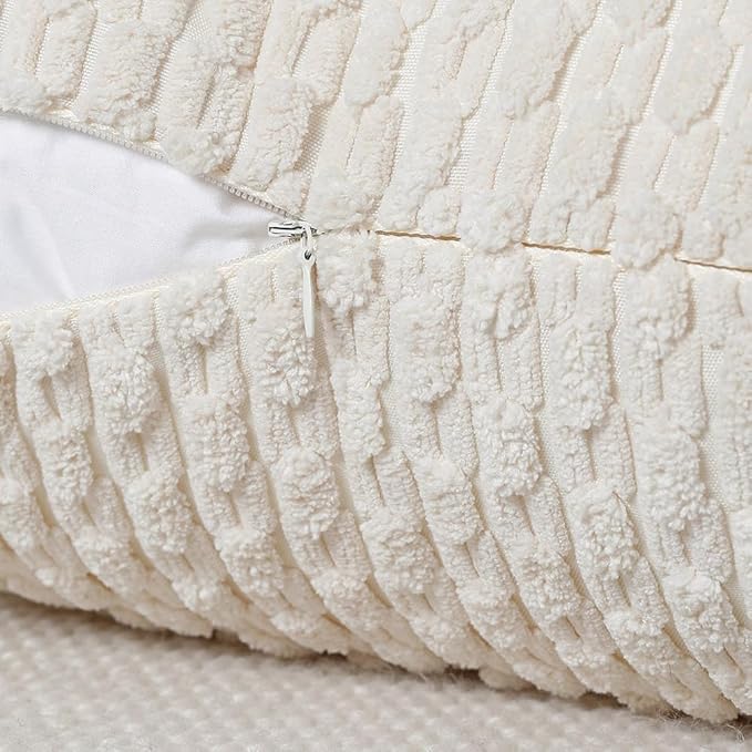 Madizz クッションカバー 2枚セット 柔らかい コーデュロイ 装飾的な 枕カバー 贅沢 スタイル クッションケース 寝室用 ソファ用 45 x 45 cm クリームホワイト