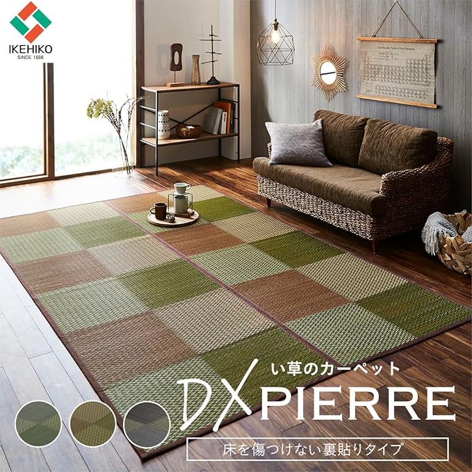 イケヒコ い草 自然素材 ラグ カーペット 花ござ 裏張りあり 正方形 単品 DXピーア ブラウン 約382 382cm 本間8畳 中国製 抗菌 防臭 ヒバ加工 汚れにくい 裏面不織布 ずれにくい 洗濯不可 市松柄 和モダン アジアンテイスト シンプル おしゃれ #1030340061402