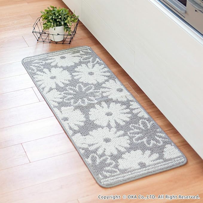 オカ(OKA) シュクレ キッチンマット 約45cm 120cm グレー(すべり止め 洗える)