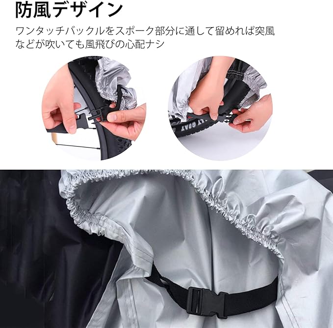 【高い撥水効果・99.9%UVカット】撥水加工の効果は通常の自転車カバー2倍です。カバーの表面は、高分子断熱材料を採用し、紫外線に対するバリアを形成し、紫外線を99.9%以上カットします。日焼けにさらされることによる自転車本体の劣化や損傷からも大事な車を守ります。それに、風の侵入を防ぎバタつきを抑え、雨、雪、ほこり、ゴミ、摩擦などから最小限に抑えることができます。
