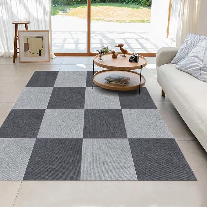 QQpony タイルカーペット ジョイントマット 吸着マット 30 x 30cm 30枚 セット 滑り止め・防污加工・防音・床暖房対応 洗濯機OK&ハサミでカット自由 赤ちゃん・高齢者・ペットに最適 ズレない吸着設計・床保護 玄関・リビング・事務所対応【ライトグレー+ダークグレー】
