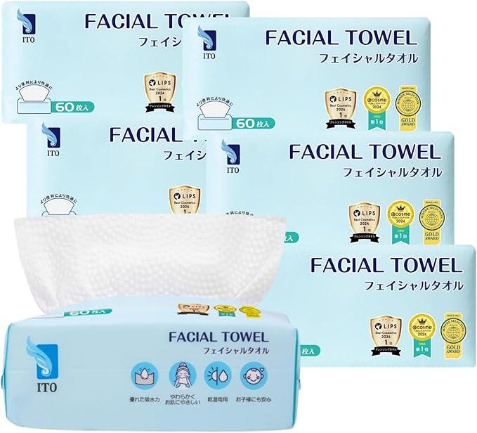 ITO ファミリーパック(360枚入り) フェイシャルタオル オリジナル鮫小紋エンボス生地 クレンジングタオル コットン 使い捨てタオル フェイスタオル使い捨て フェイスケア スキンケア OEKO-TEX 認証 赤ちゃんにも優しい @COSME受賞
