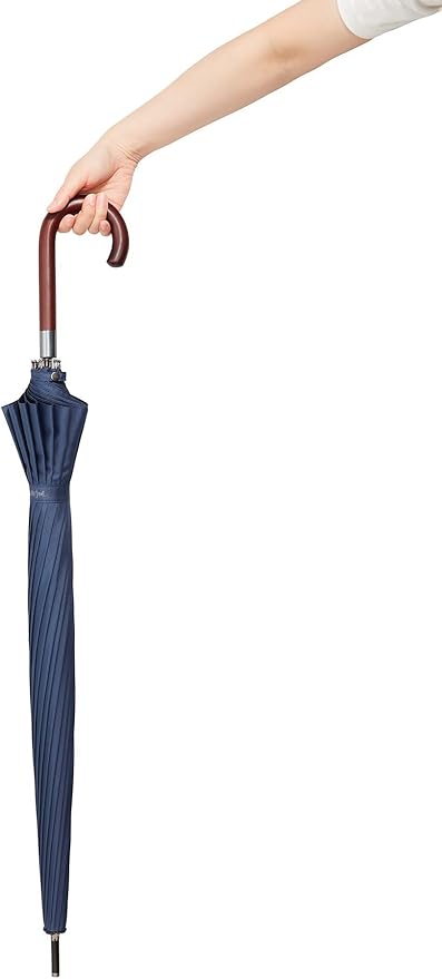 Waterfront 長傘 雨傘 『 16Kムジ ジャンプ 』 ネイビー 65cm キレイな弧を描く16本骨 親骨 FRP + 16本骨 + 撥水 4級 + ワンタッチ メンズ U165-0905NV1-B2