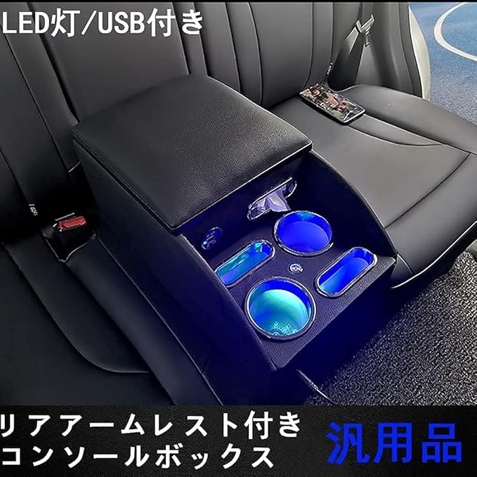 ホンダ リアコンソールボックス トヨタリアコンソールボックス ブラック 汎用 リア席やベンチシート用の肘掛け兼小物入れドリンクホルダー 車内収納