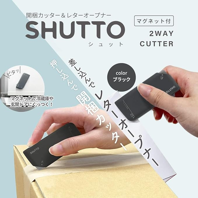 サンスター文具 レターオープナー 開梱カッター マグネット付 SHUTTO シュット ブラック S3720799