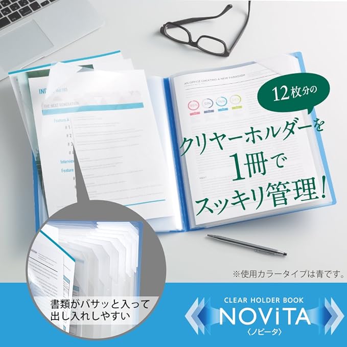 ●バサッと書類を入れる簡易さはそのままに、クリヤーホルダー12枚分が1冊になったファイルです。