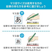 従来の学習帳よりも大きく書けるように設計しており、筆記部分が白抜きで罫線が通常よりも太いので、どこに文字を書けばよいかが一目で分かるのが特長です。