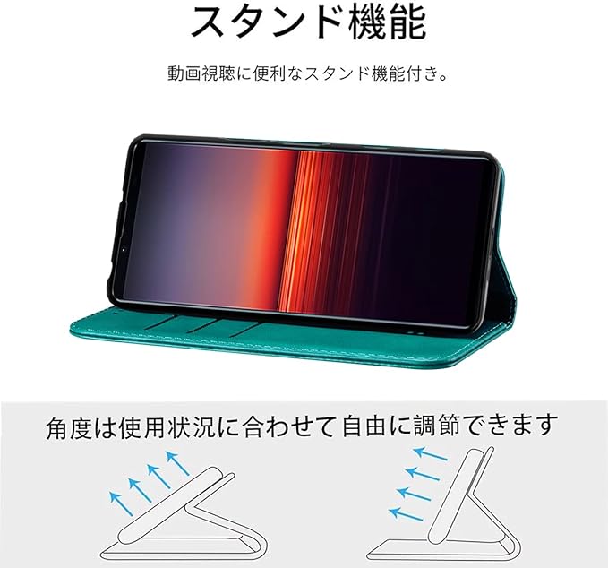 Xperia 5 III ケース 手帳型 高質PUレザー Xperia 5 III カバー エクスペリア 5 III ケース SO-53B ケース SOG05 耐衝撃 内蔵マグネット開閉式 ベルトなし スマホケース おしゃれ カードポケット スタンド機能 便利 スプラット同梱 携帯ケース(ターコイズ)