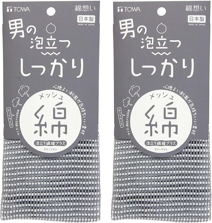 東和産業 ボディタオル 綿想い 男の泡立つ しっかり ロング 綿タオル 2個セット 約25 110cm 日本製 ブラック 34641