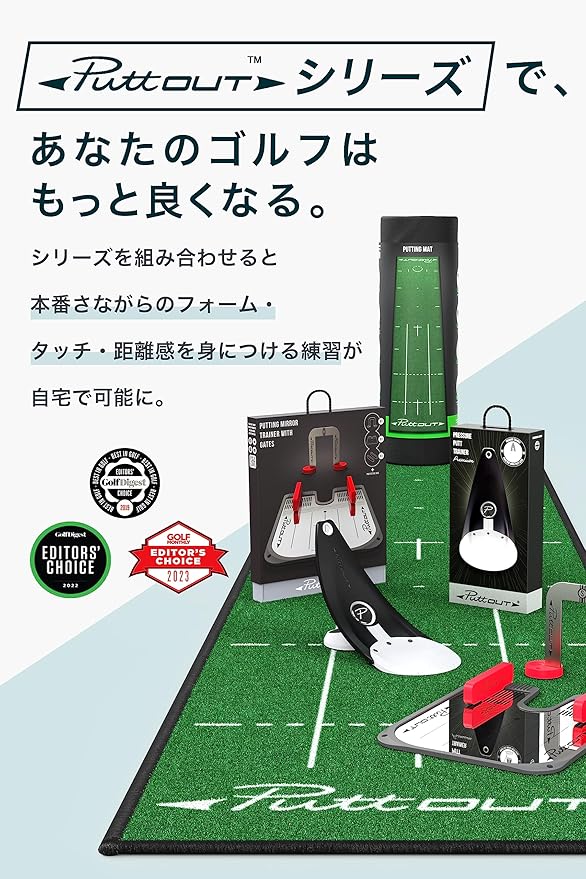 ✅【ゆったりサイズでしっかり練習】ゴルフスコアの40%はパッティングなのに対して、パター練習マットは小さな物ばかり。当ゴルフマットはPuttOUTのパターマットの中で最も大きいサイズとなっていて、ゆとりをもって集中して取り組めるサイズ感のゴルフ練習マットになっています。