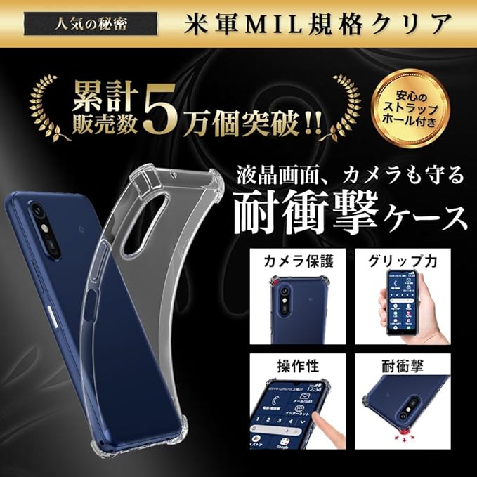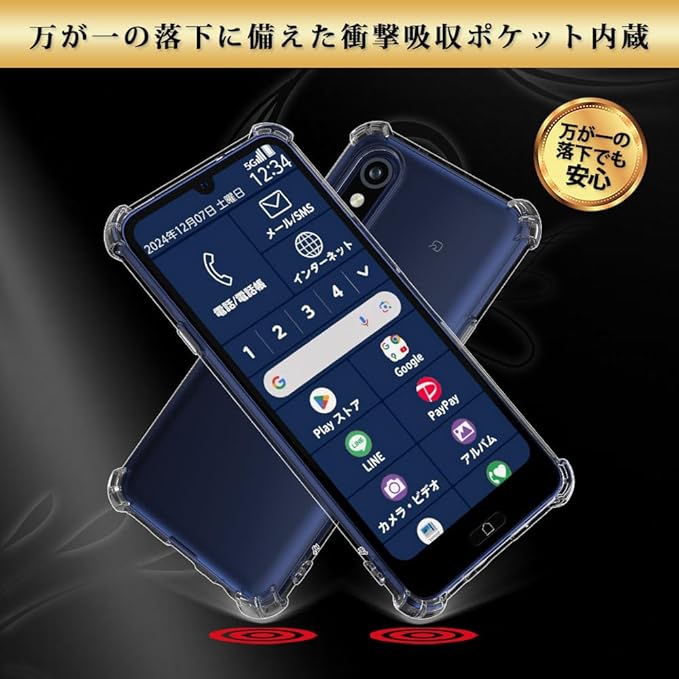 【スマホを落としてしまっても衝撃を最小限に抑えるケース】スマホが日常の生活に溶け込む現代で、落下などによるスマホの破損は販売台数に比例して増えている状況です。本ケースの角には落下時の衝撃を吸収するエアポケットを備えており、万が一スマホを落としてしまった場合でも、落下時のダメージを最小限に抑えることが可能となっており、その耐衝撃性能は第三者機関の試験による米軍MIL規格をクリアするほど高いことが証明されております。また、らくらくスマートフォン a A401FC(ワイモバイル) らくらくスマートフォン Lite MR01(SIMフリー)専用にオリジナル設計しているためぴったりとフィットし、保護性能には欠かせないポイントとなっています。