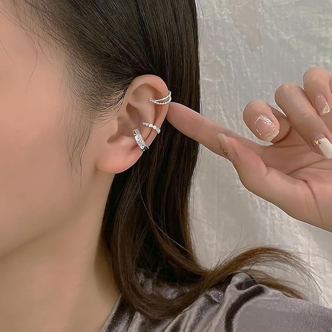 DALISITO イヤーカフ フェイクピアス ピアス イヤリング 片耳用 耳掛け 軟骨 挟む ピアス穴不要 シンプル シルバー 3個入り
