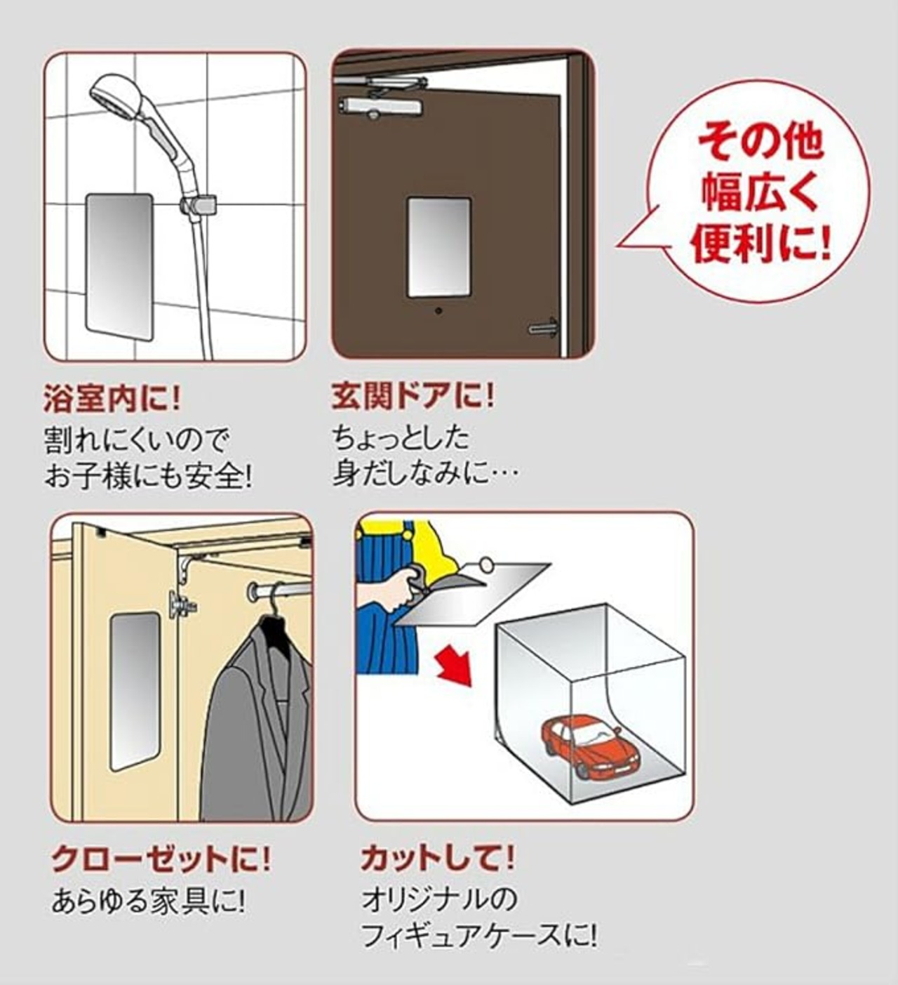 ●どこでもミラーは0.5mm厚と薄いため、ハサミ等で簡単にカット出来る