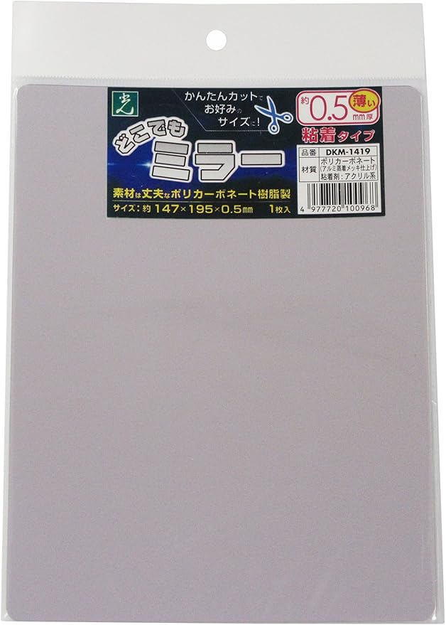 光 ウォールマウント どこでもミラー 粘着付 鏡 147 195 0.5mm DKM-1419