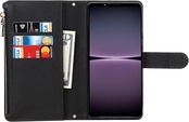 for Xperia 1 IV ケース for Sony Xperia 1IV SO-51C / SOG06 縄掛けケース 手帳型 財布型 ICカード コインポケット ストラップ付き カード 収納 小銭入れ ファスナーポケット付き PUレザー 6色 ブラック