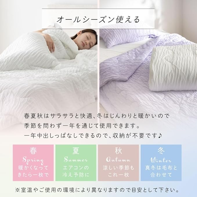 とろとろケットのポイント②一年中使える 春夏秋はサラサラと快適、冬はじんわりと暖かいので季節を問わず一年を通じて使用できます。 一年中出しっぱなしできるので、収納が不要です♪