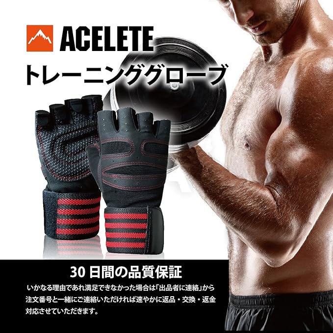 ACEFITS トレーニンググローブ ウェイトリフティング ジム グローブ 筋トレ 手首固定 リストラップ 付き ブラック L