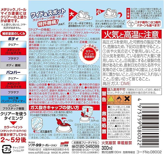 ソフト99(SOFT99) 99工房 補修ペイント ボデーペン クリアー 300ml 自動車ボディ、樹脂バンパー、金属、木材 08002