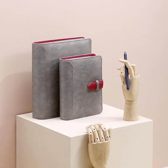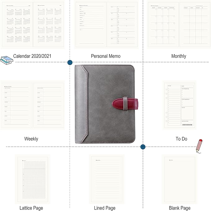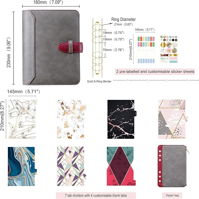 Yiwusoer日記 旅行リフィル式ノート システム手帳 A5/A6 ルーズリーフカスタマイズ 月間週間ディリースケジュール 6リングステンレスバインダー プランナー オーガナイザー (グレー, A6)